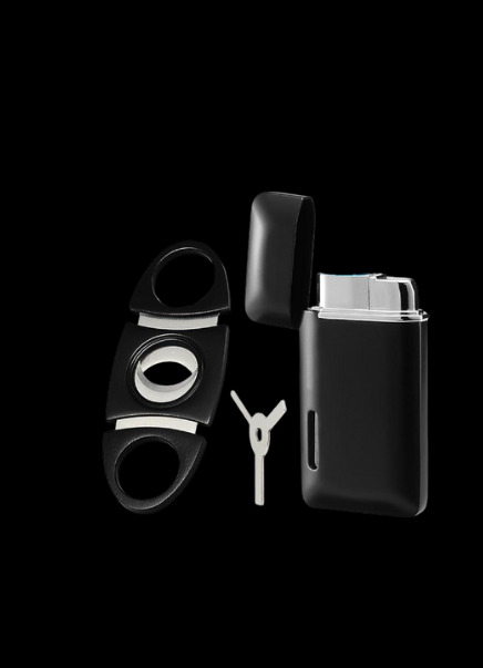 Elevate your experience with the Legacy Cutter & Lighter Set. Featuring a precision stainless-steel cutter and a refillable double jet flame torch lighter, this set combines functionality with refined design. The windproof, adjustable flame ensures a flawless light every time, while the sleek black finish adds a touch of sophistication. A perfect gift for the modern gentleman, crafted to reflect the elegance and lifestyle of Jiménez Legacy.