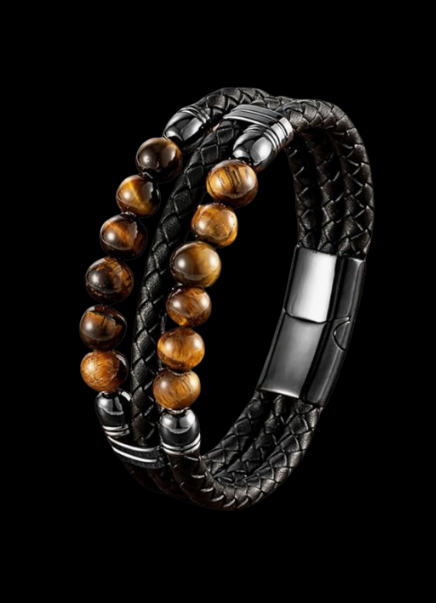 Designed for the modern gentleman, this bracelet combines the strength of braided genuine leather with the elegance of natural beads. Finished with a durable stainless-steel clasp, it offers both style and resilience. A bold accessory that reflects confidence, sophistication, and the timeless luxury of the Jiménez Legacy lifestyle.