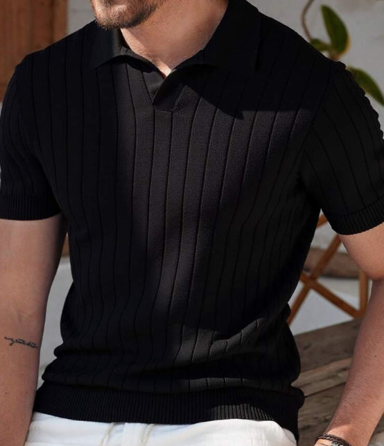Premium Black Ribbed Polo – Luxury Knit Edition